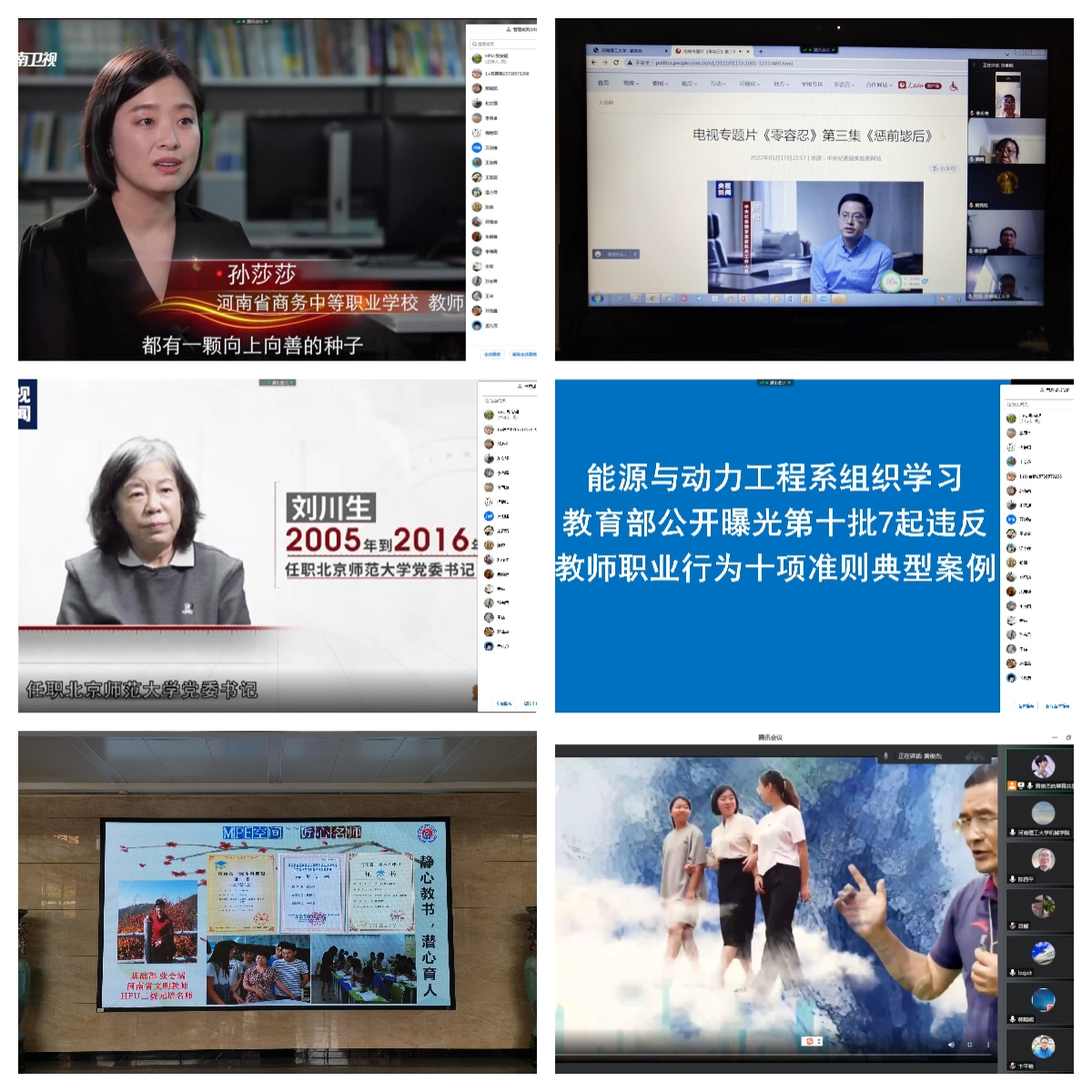 开展警示教育,筑牢师德防线。为推进全面从严治党和师德师风教育,进一步规范教师职业行为,持续营造风清气正的教育发展氛围,10月下旬,组织各基层教工党支部按照学院“师德师风建设月”活动安排,观看了专题教育片《零容忍》第三集《惩前毖后》。10月25日,组织教职工学习教育部近日公开曝光第十批七起违反教师职业行为十项准则典型案例。