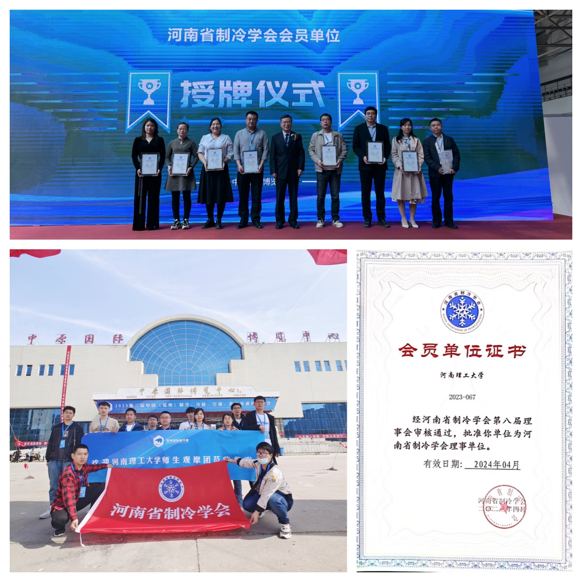 我校制冷及低温工程研究团队多年来致力于制冷及低温技术应用、制冷剂低温装备开发以及相变热力学等基础研究,坚持“产学研”结合,潜心科研,服务社会。与省内外企业合作,研制开发一系列设施设备,成绩显著,成果突出。经河南省制冷学会第八届理事会审核通过,我校被批准为河南省制冷学会理事单位。开幕式上,由河南省制冷学会范晓伟理事长为我校授予了会员单位证书。