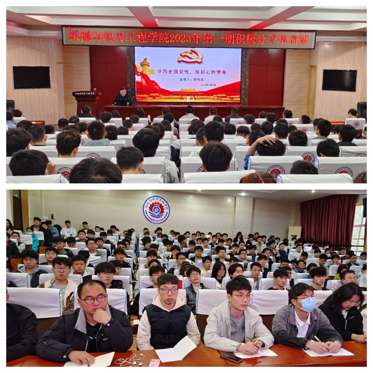专职组织员刘琳、学工办主任王瑞瑞、团委书记王思思、党支部书记胡相忠为学员们授课,学院本期全体积极分子参加培训。