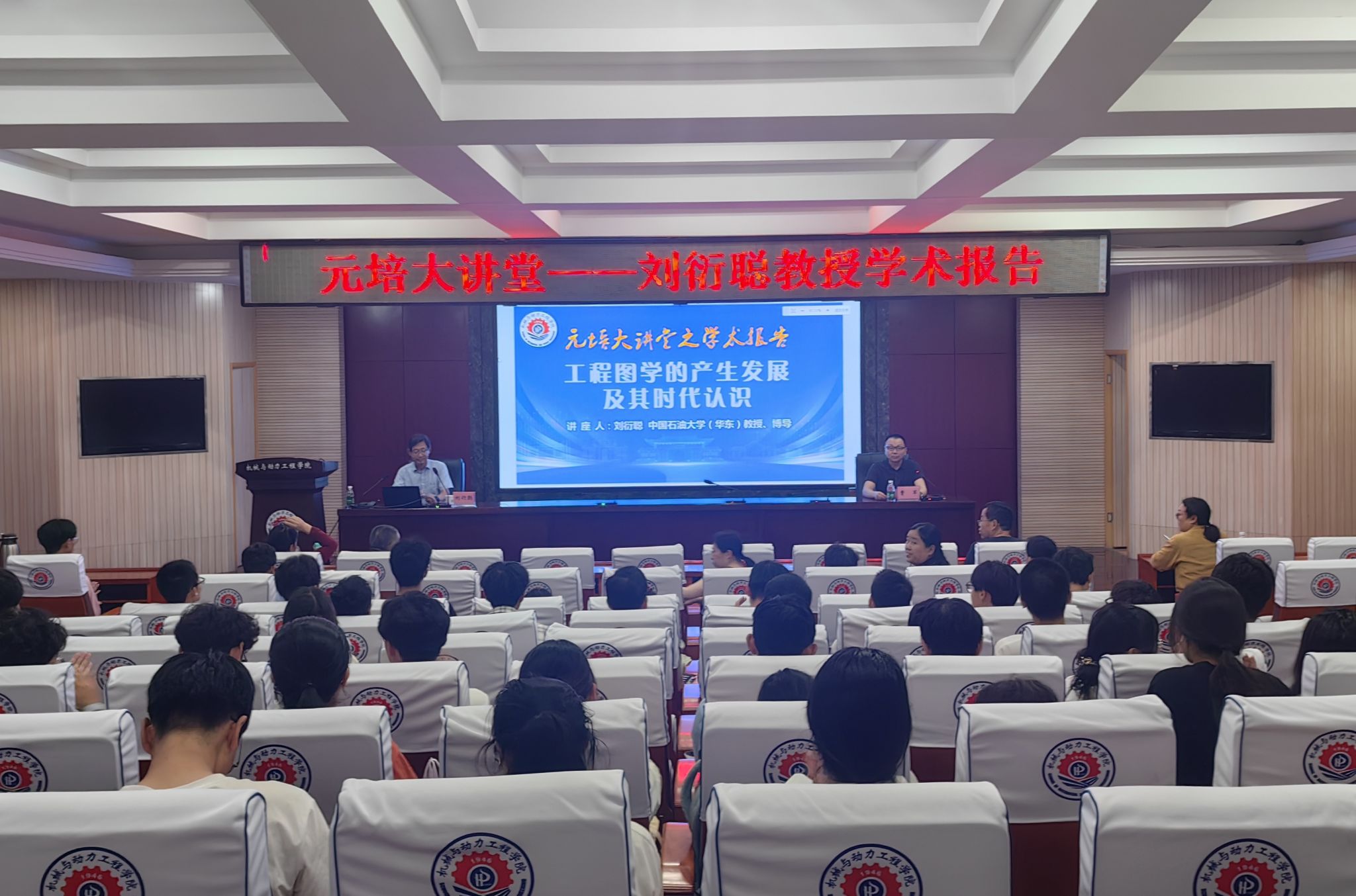 “元培大讲堂之专家学术报告”活动在学院205学术报告厅顺利举行。中国石油大学(华东)刘衍聪教授应邀出席,并作了题为《工程图学的产生发展及其时代认知》的学术报告。学院基础教学部相关教师与部分本科生代表参加了活动。活动由基础教学部主任曹军主持。