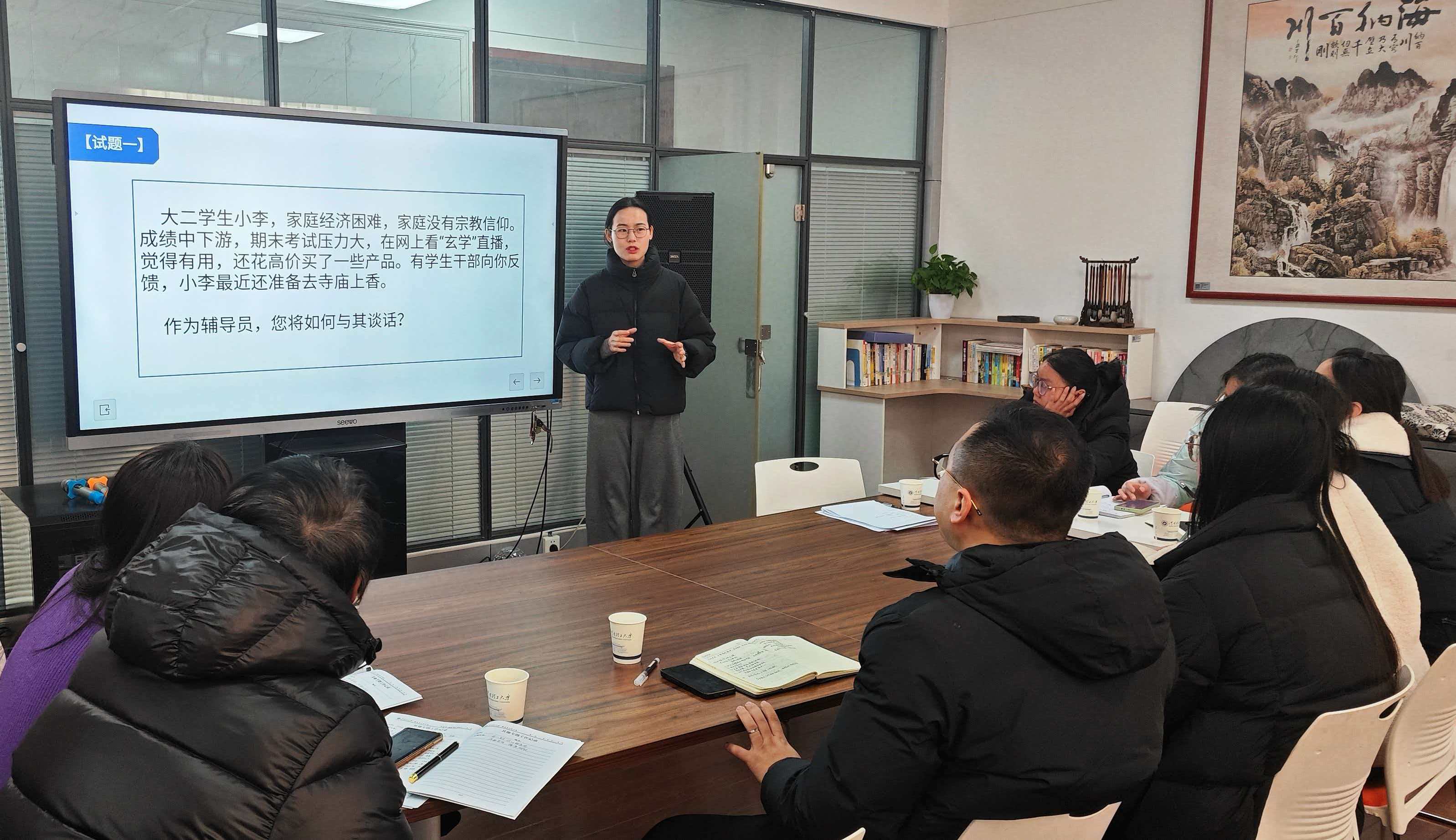 本次研讨围绕“谈心谈话能力提升”这一核心,结合我校第九届辅导员素质能力大赛的真题案例,通过案例剖析、情景模拟与集体研讨等形式,深入探讨谈话技巧、共情表达、问题聚焦与引导策略等关键环节。与会人员结合日常工作中的典型情境与实际困难展开交流,并分享了有效经验与方法。