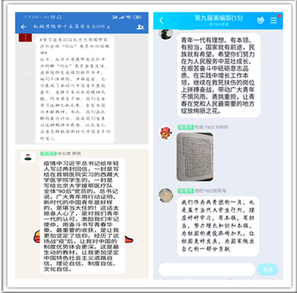 各青年学生组织以组织为单位认真开展了线上学习回信精神,并展开热烈讨论,同学们感触颇深。