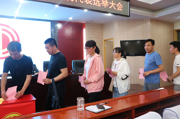 之后,大会通过了监票人、计票人名单,由监票员发放选举单,全体教职工现场填写选举单并进行了投票选举。